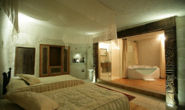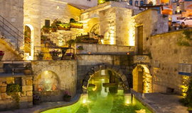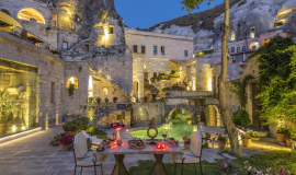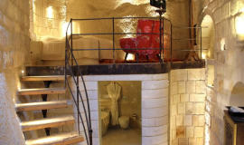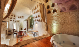 Ayrı ayrı dekore edilmiş süitlerle hizmet veren bu otel, Kapadokya taş-oyma mimarisinin mükemmel bir örneğidir. Otelde hendek tarzı açık havuz ve antik Roma havuzlarını andıran kapalı havuz bulunmaktadır. Bahçede birinden beyaz diğerinden kırmızı şarap akan ücretsiz çeşmeler vardır.